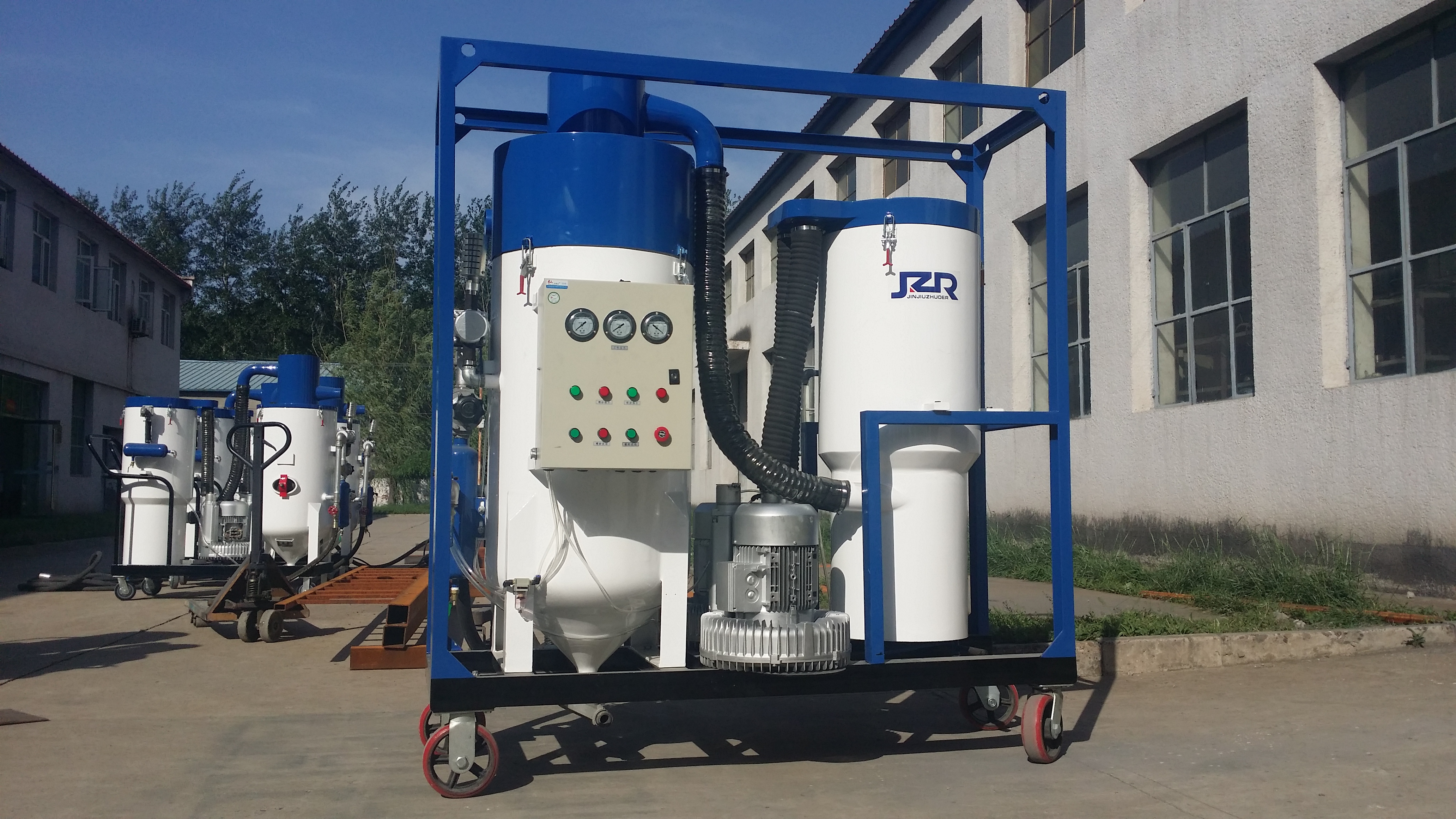 JZR-2DH環(huán)保噴砂機(jī)型專門針對(duì)中小型船體、儲(chǔ)油罐、高架橋梁以及鋼板、鋼構(gòu)件遠(yuǎn)距離環(huán)保噴砂設(shè)計(jì)制作,該機(jī)設(shè)有吊耳,方便吊裝轉(zhuǎn)場(chǎng),其無塵無污作業(yè),確?,F(xiàn)場(chǎng)環(huán)保達(dá)標(biāo)無公害。出色的表面處理能力可以輕松達(dá)到清理等級(jí)中最高級(jí)Sa3級(jí),過硬的回收能力可以在40米作業(yè)范圍輕松回收銹污、氧化皮、漆皮、粉塵等。例如:鋼構(gòu)件表面處理氧化皮、船塢內(nèi)倉免清理除銹、橋梁防腐、水利工程閘門、礦山、石油、化工、冶金、港口機(jī)械、車輛制造領(lǐng)域。 該設(shè)備適用磨料為剛玉砂、石榴砂等輕質(zhì)磨料,優(yōu)化后可以使用鋼砂,在現(xiàn)場(chǎng)遠(yuǎn)程或高空長(zhǎng)距離環(huán)保噴砂作業(yè)時(shí),對(duì)于大型工件、金屬結(jié)構(gòu)表面涂化前清理除銹、除漆、污垢作業(yè),是理想的設(shè)備之選。 該設(shè)備與JZR-2D屬于同級(jí)設(shè)備,和JZR-1DH相比,作業(yè)半徑加長(zhǎng)一倍,綜合效率有很大提升,共性是方便吊裝叉運(yùn)。